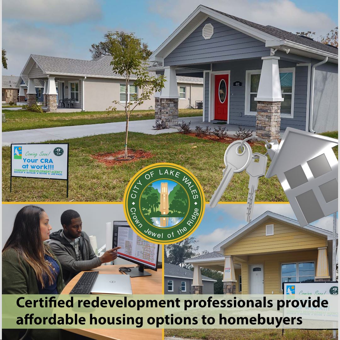 Congratulations to CRA Project Manager Darrell Starling and CRA Specialist Cheryl Baksh for becoming certified redevelopment professionals. Both Darrell and Cheryl work behind the scenes of the Lake Wales Community Redevelopment Agency. They help provide affordable housing options to homebuyers.