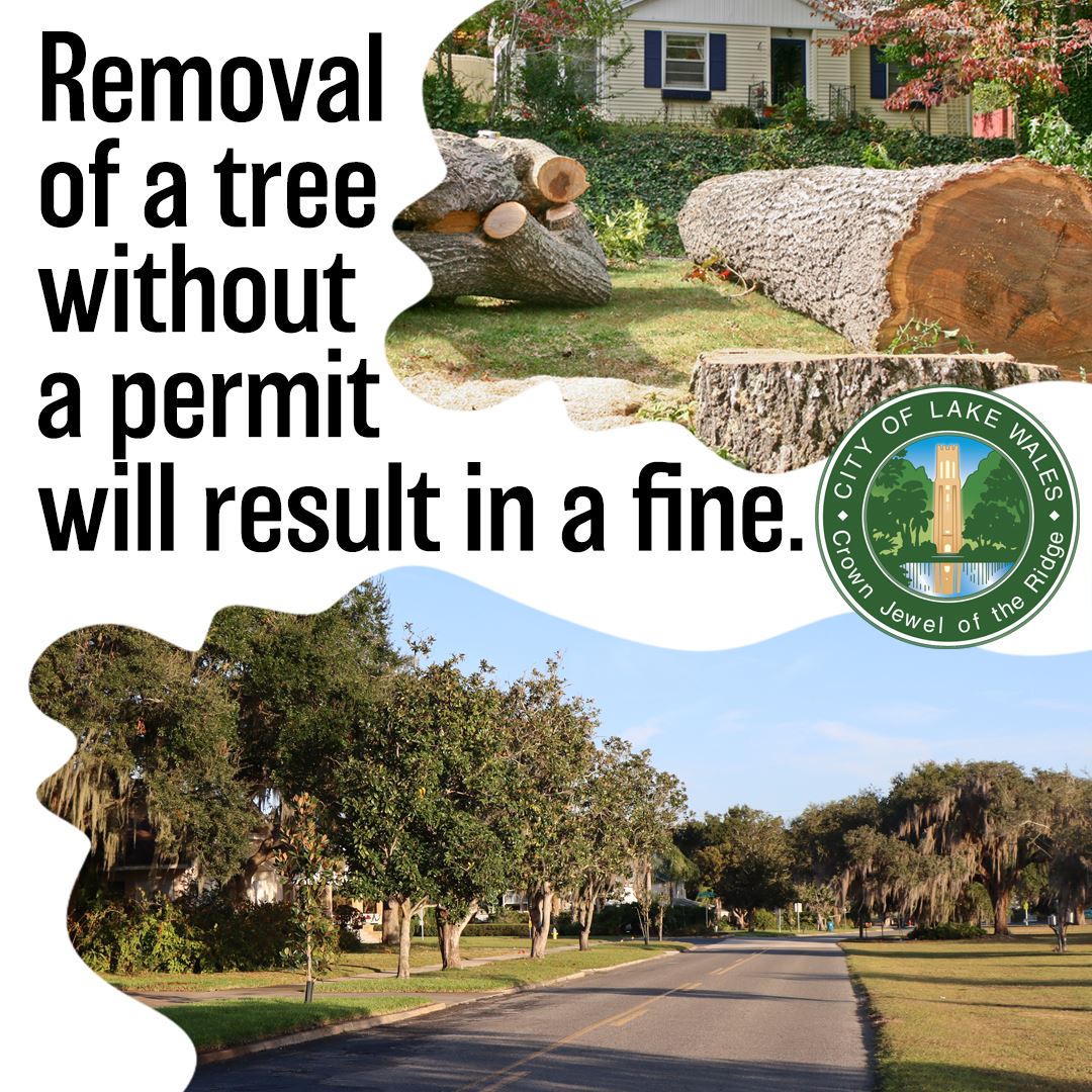 Public notice: The removal of select trees without a permit within the city limits of Lake Wales will result in a fine, ranging from $250 to $2,500. There is no fee associated for this type of permit. To request a permit application, please call (863) 676-5112 ext. 251, or email srowland@lakewalesfl.gov. For more information, check out the ordinances listed below.