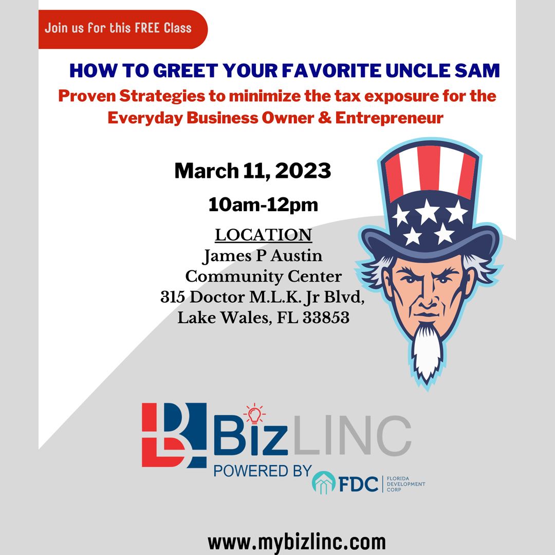 Calling all entrepreneurs! Learn proven strategies to minimize the tax exposure for the everyday business owner. Join us on Saturday, March 11 between 10 a.m. to noon at the J.P. Austin Community Center, Lake Wales. For more information, call (863) 777-2890.