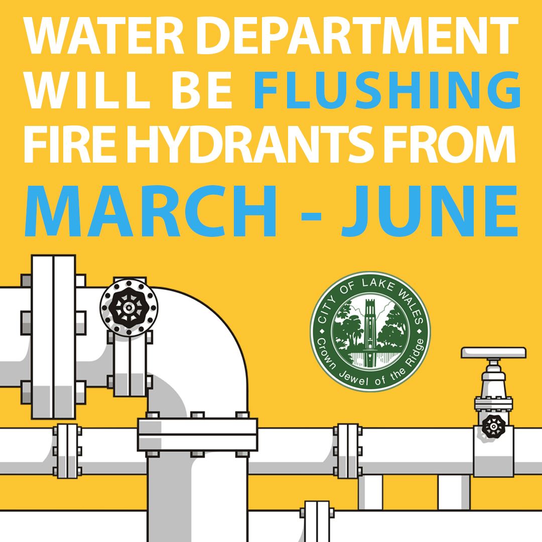 Over the next three months, the City of Lake Wales Water Department will start flushing the city’s fire hydrants, starting March 27. If you notice a fire hydrant releasing large amounts of water during this timeframe, don’t be alarmed. It’s part of an annual preventive maintenance activity that verifies proper operation of the hydrants.