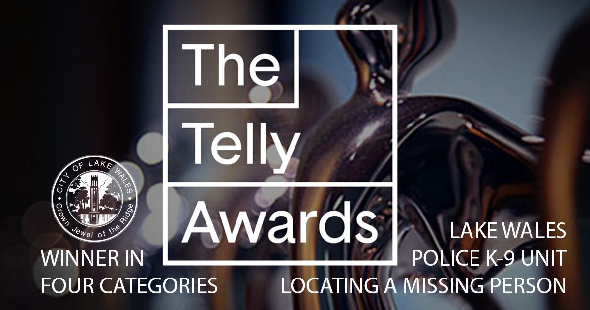 Staff in the City of Lake Wales Communications & Engagement Department and Police Department were awarded four 2024 Telly Awards in four categories for their “Locating a Missing Person – Police K-9 Unit” video – Social Video for People’s Telly Award, Public Relations, Health & Safety for Social Video and Education & Training.