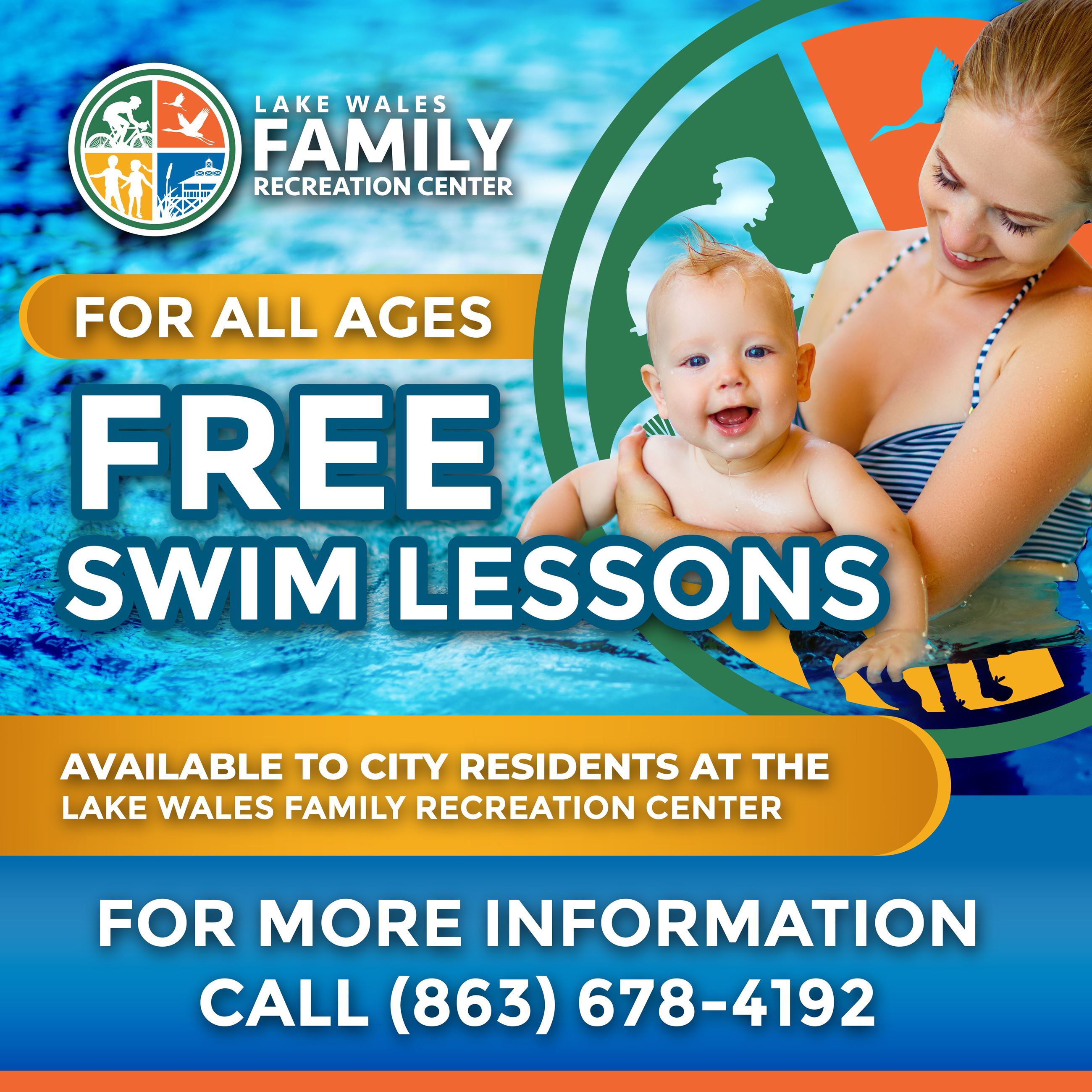 City residents may sign up for free swim lessons at the Lake Wales Family Recreation Center. Instructors are available to teach kids and adults how to swim. The Red Cross has developed Swim Lessons that allow everyone to learn in a safe environment at their own pace. Parent and Infants and Toddler Aquatics classes are taught by certified, knowledgeable and caring instructors who can help swimmers at every level feel comfortable in the water and progress to the next level. Swim lessons for adults are scheduled at the front desk. For more information, call (863) 678-4192.